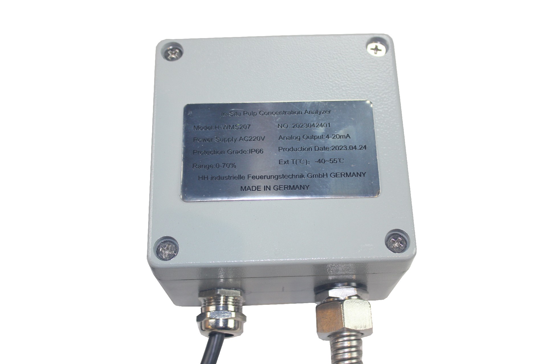 H-WMS100在线式矿浆浓度分析仪采用技术由公司专业研发团队针对苛刻工业应用场合成功研发。最早应用于冶金行业高炉原料配料搅拌系统,探测器采用稀土金属(铋)元件高精度集成,在分析系统组装完成后,探测器根据中央处理器发出的探测指令在探测区域形成超高频谐振区,中央处理器以探测前设定的超高频谐振系数对一切经过此区域的材料进行探测分析,探测区域与被探测材料形成一个相对恒定的超高频谐振探测场。当水分在被测原料内出现时整个恒定的超高频谐振探测场就会被微弱扰动,中央处理器就会瞬间将这种水分微弱扰动信号进行数字化分析,逆向运算后转化为矿浆浓度值并迅即转换成模拟信号输出。从而我们也就能在很短的时间内获取所探测原料内的矿浆浓度及水分含量信息,为下一步工作提供了可靠的数据保障。分析仪本体均具备整体防爆防腐蚀防护,因此本分析仪不受现场防爆与腐蚀环境影响,安装轻便安全,分析可靠精确。